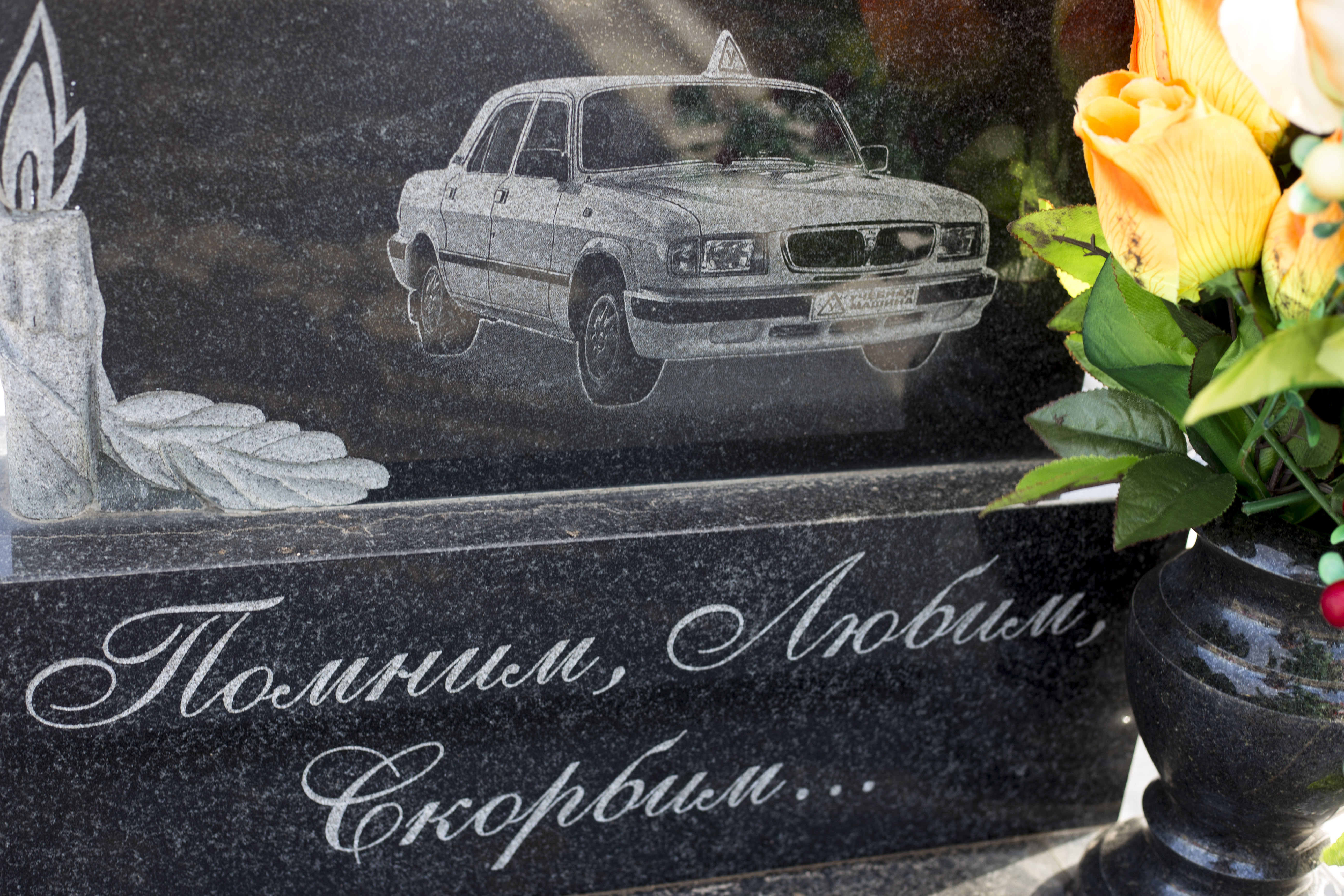 Вместо крестов и серых надгробных плит все чаще встречаются иконические изображения, на которых застыли истребители в полете и самолеты гражданской авиации, корабли и городские пейзажи стройки.